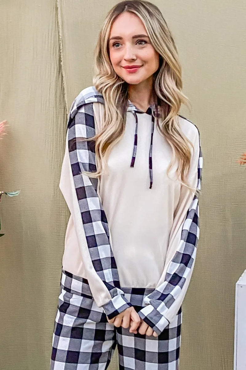 And The Why Drawstring Hooded Top and Plaid Pants Lounge Set