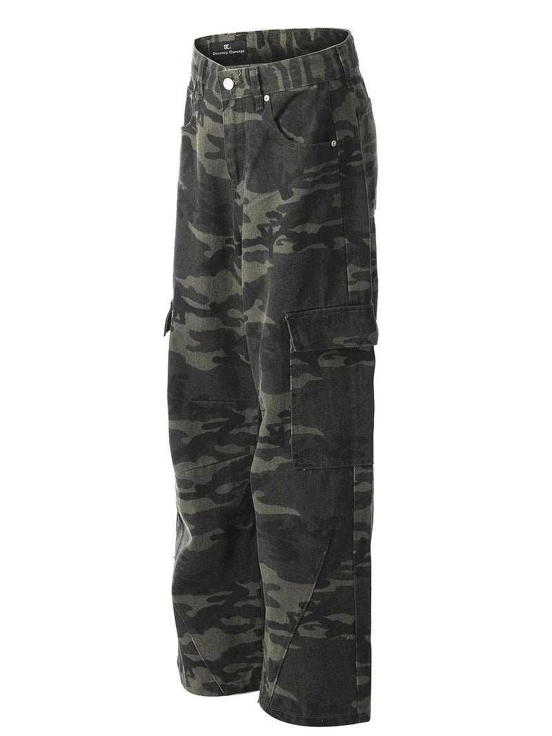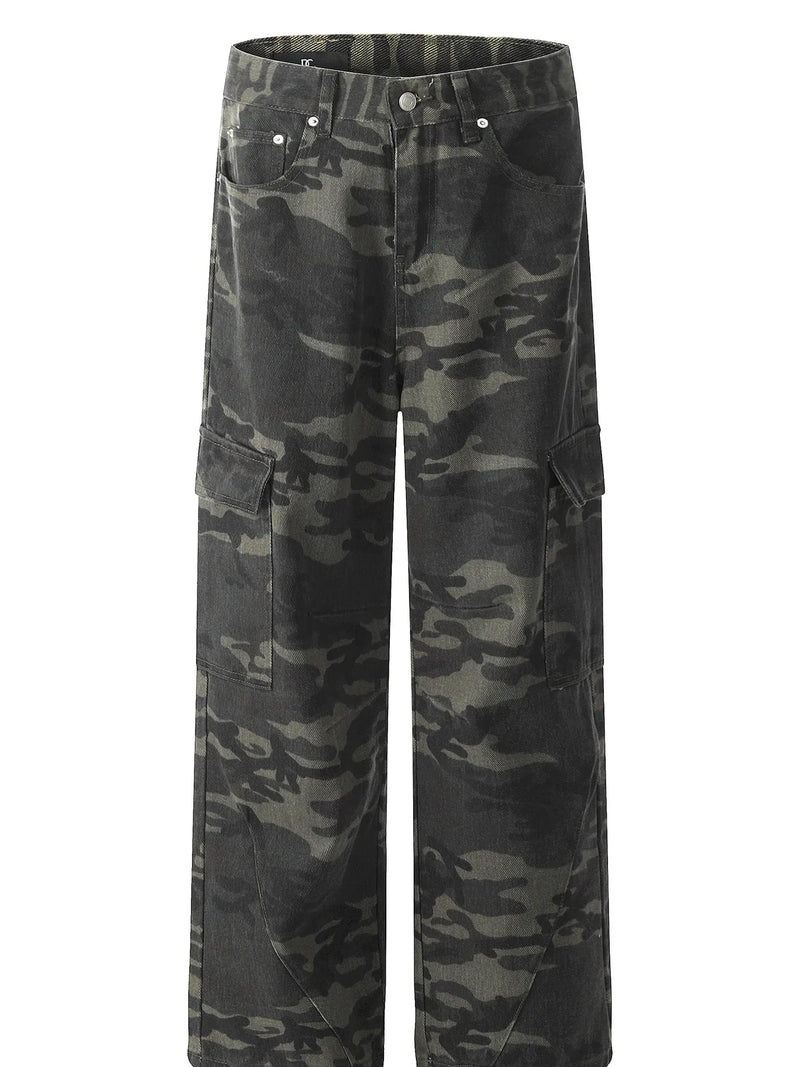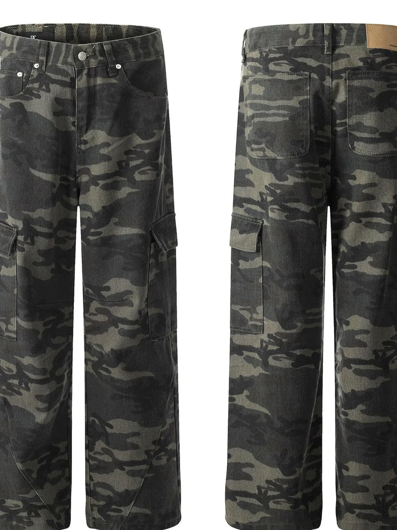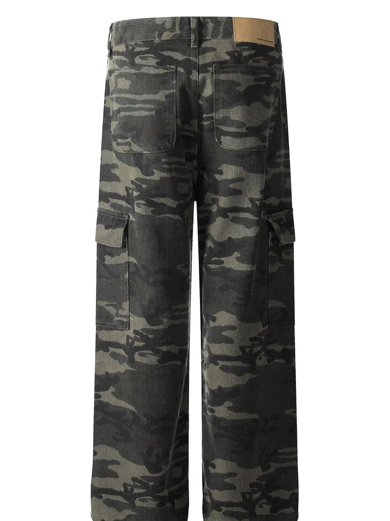 Men's Camouflage Cargo Jeans with Multiple Pockets