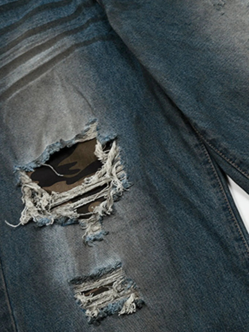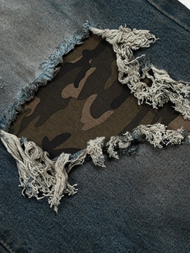 Men's Plus Size Distressed Camouflage Cargo Capris Jeans Sold Out
