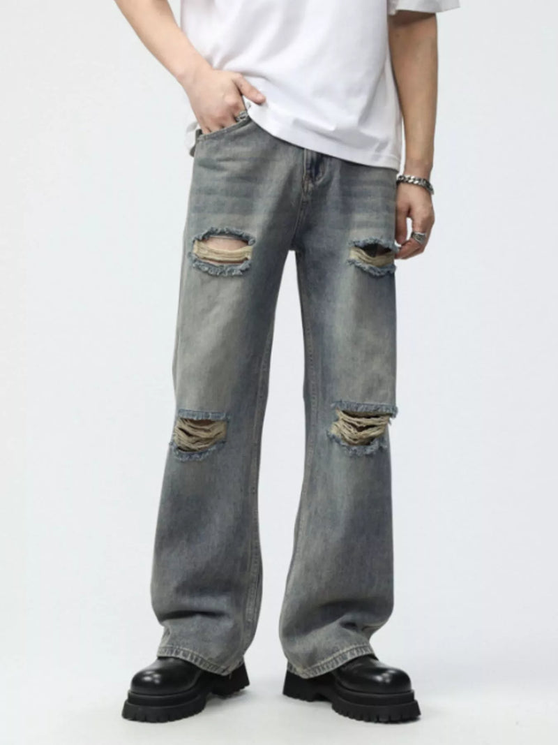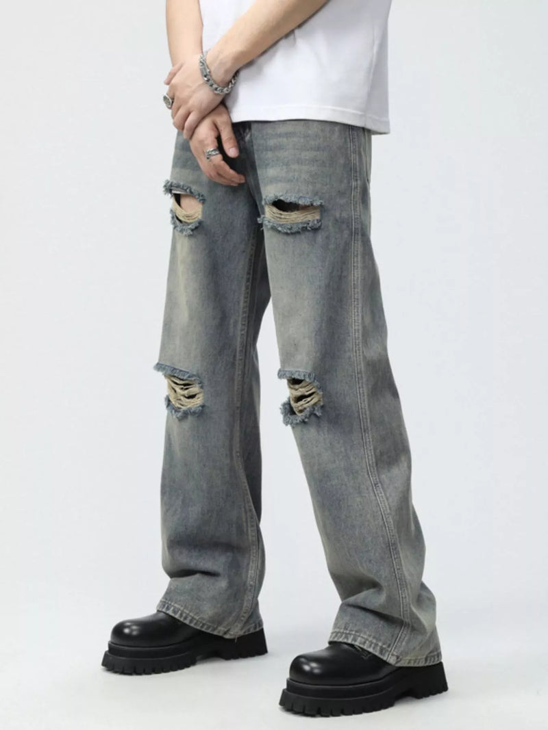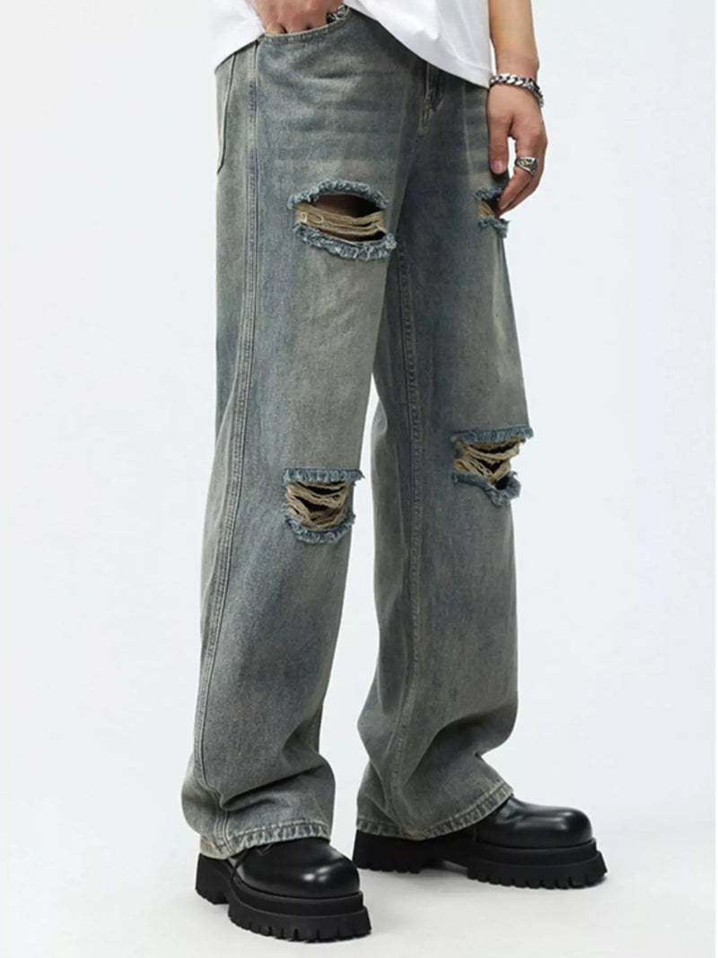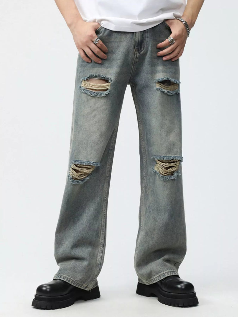 Men's Distressed Bleached Loose Fit Jeans Sold Out