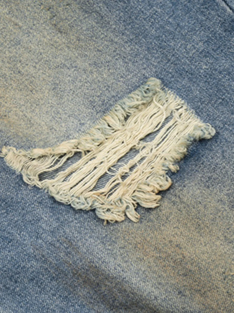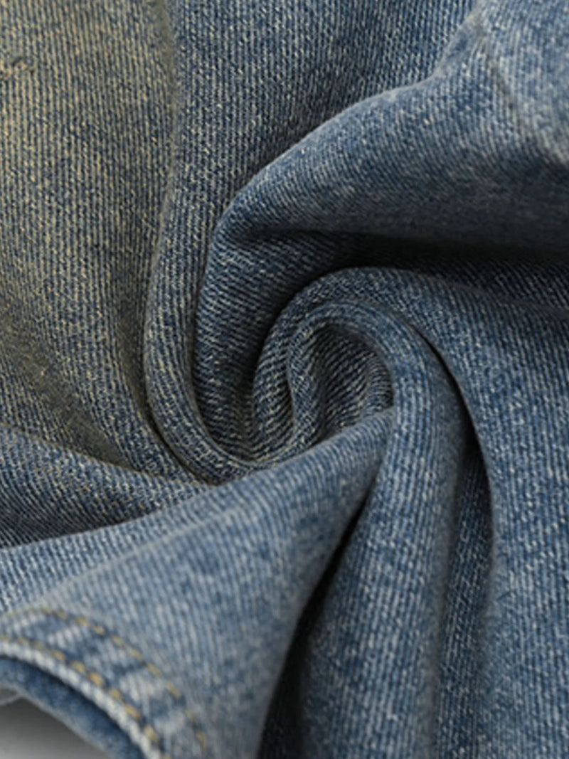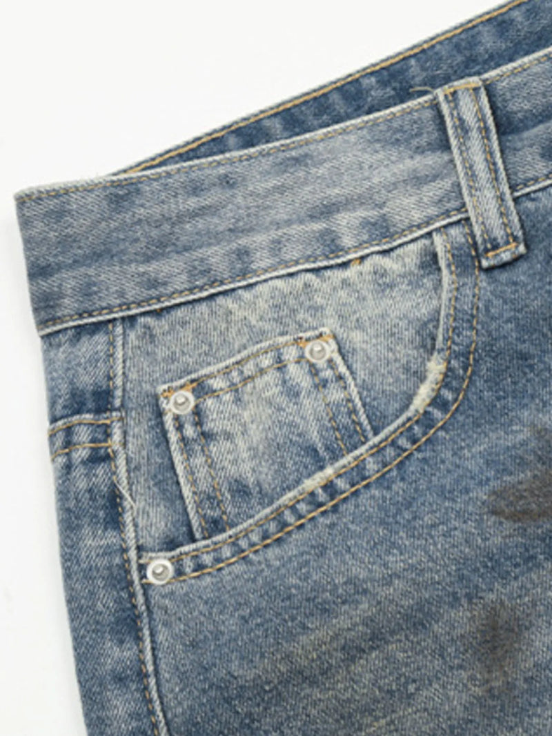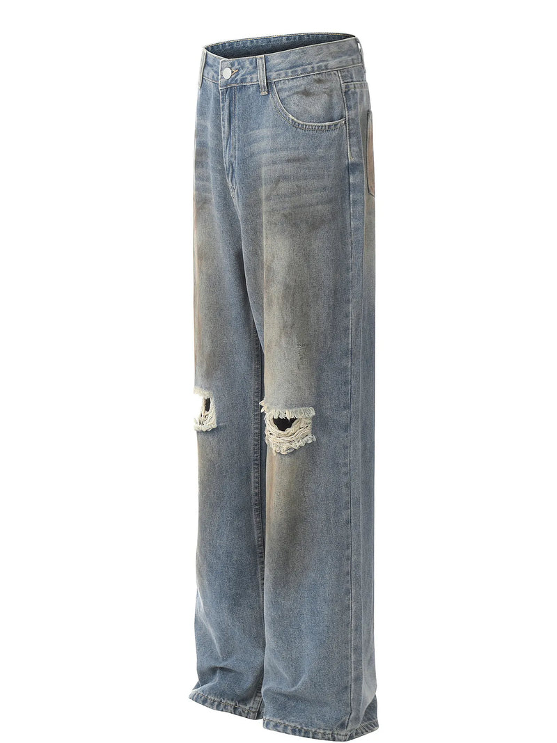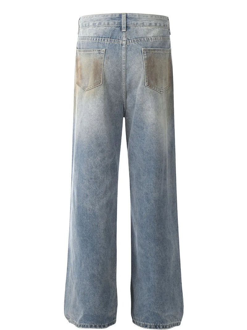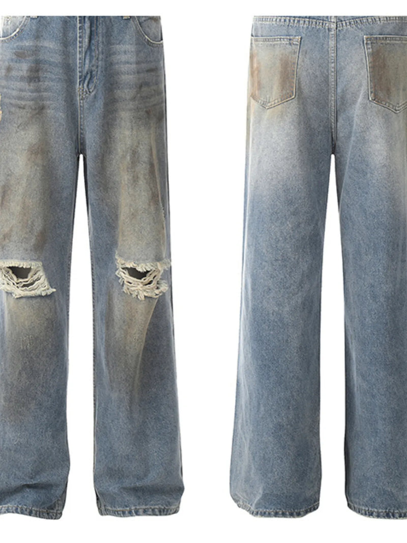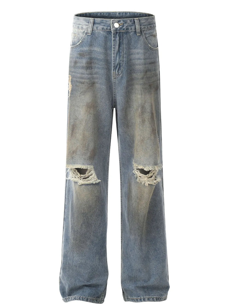 Men's Washed Distressed Wide-Leg Jeans