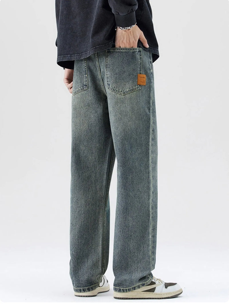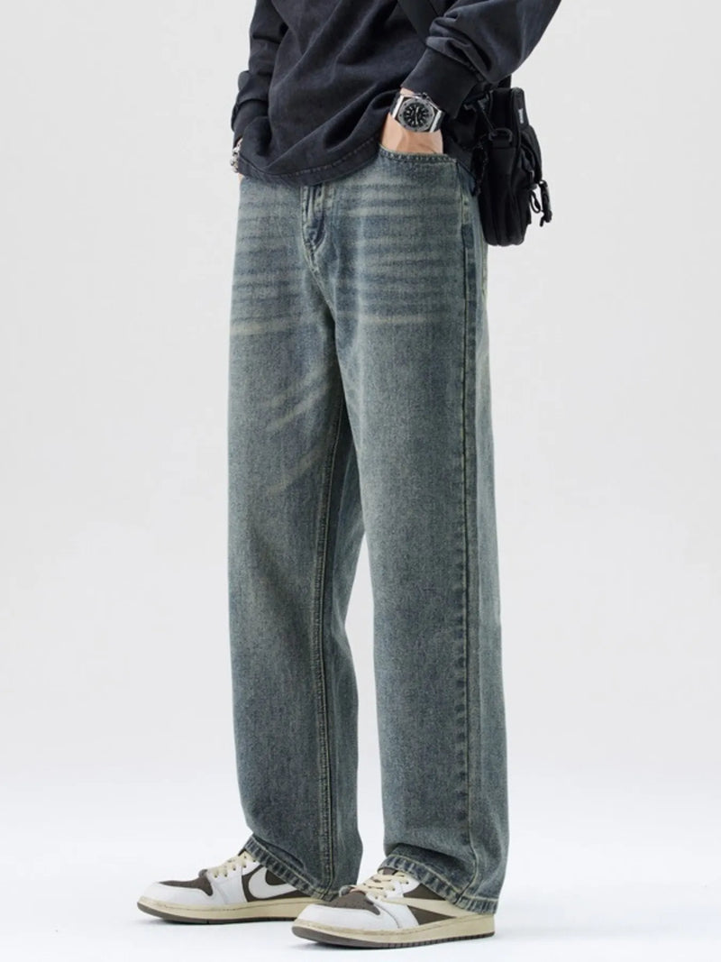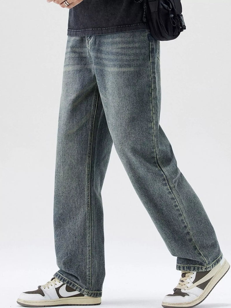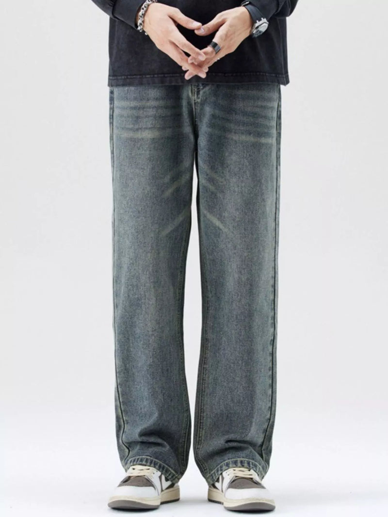 Men's Full Size Wide Leg Wash Relaxed Fit Jeans Plus Size $18.99