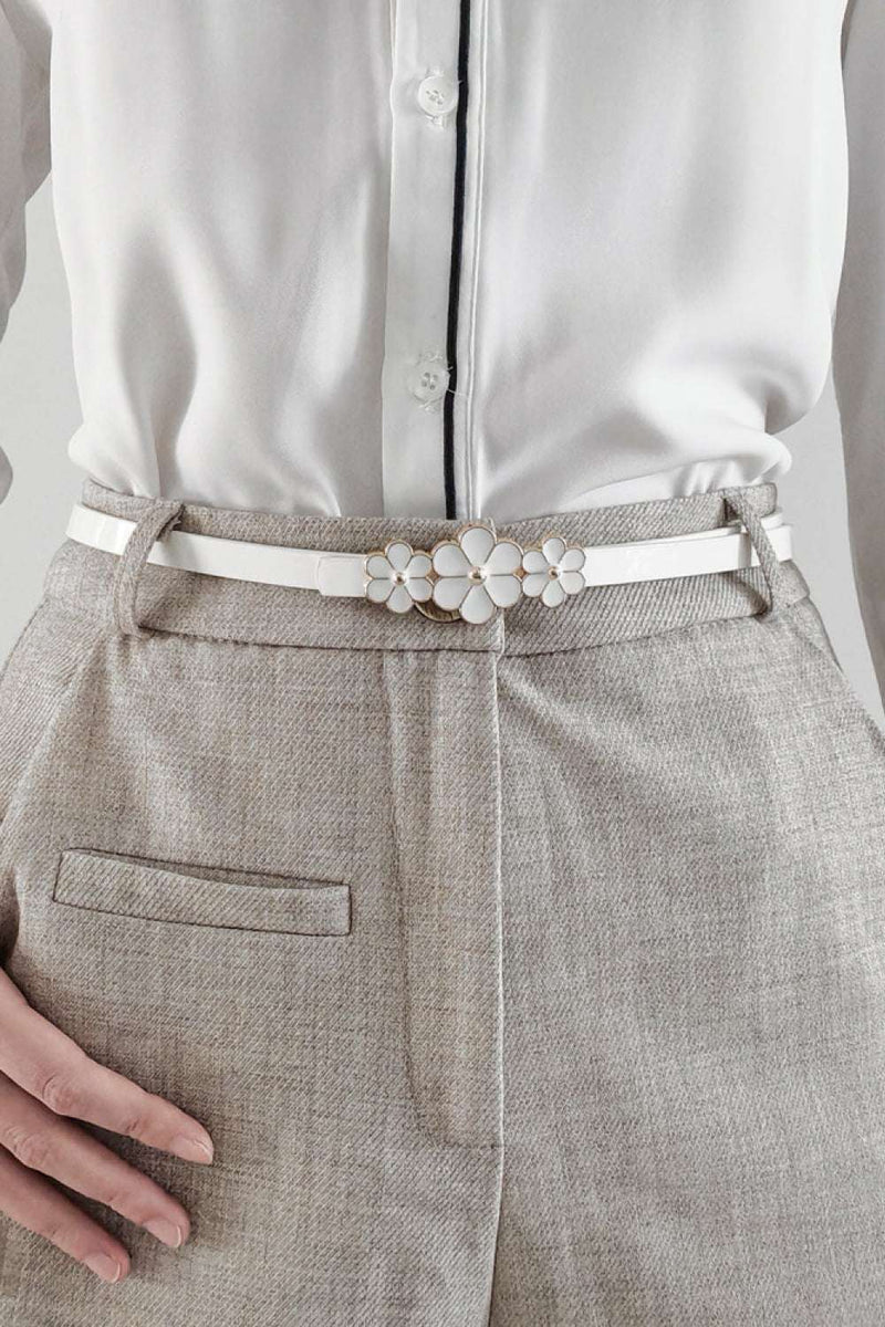 Introducing the Flower Decor Skinny PU Belt, a stylish accessory that adds a touch of elegance to any outfit. Made from high-quality PU material, this belt is both durable and fashionable.