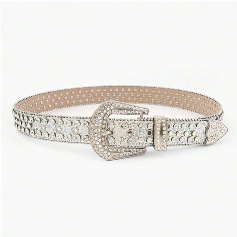 Introducing the PU Leather Rhinestone Belt, a stunning accessory that adds a touch of glamour to any outfit. This stylish belt is made from high-quality PU material, ensuring durability and comfort.