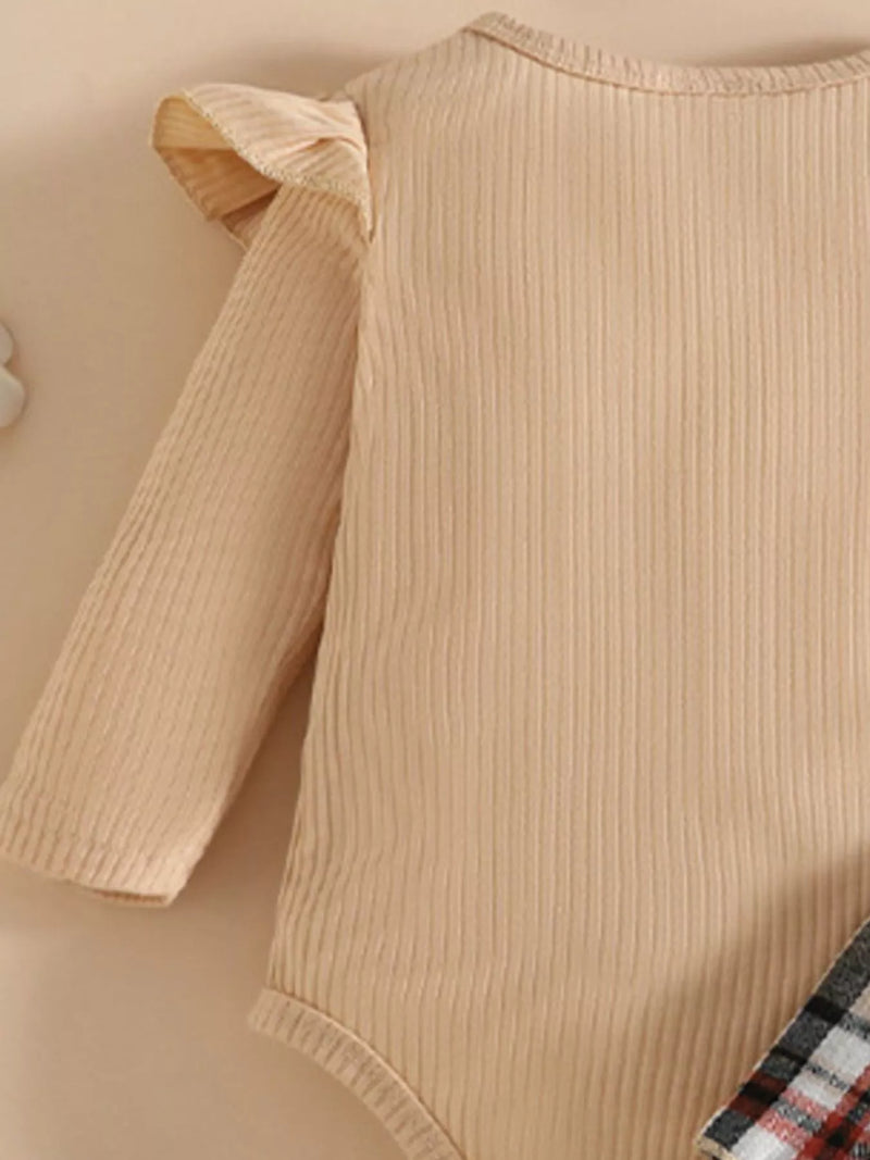Children's Ruffled Ribbed Bodysuit and Skirt Set with Headband