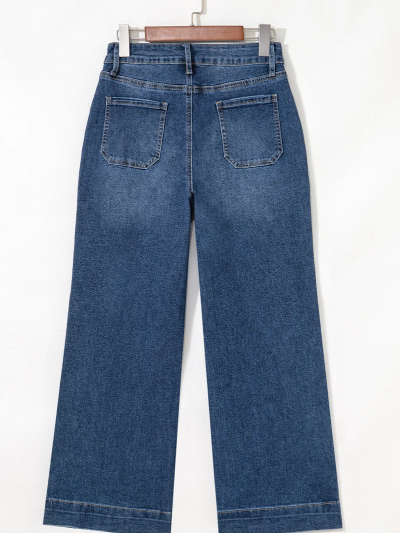 Introducing the Cropped High Rise Wide Leg Jeans! You know, the kind of jeans that say, 'I’m fashionable, but I also enjoy a good pizza.' With pockets deep enough to hide your secrets, these jeans are perfect for when you want to look chic while still being able to carry snacks.