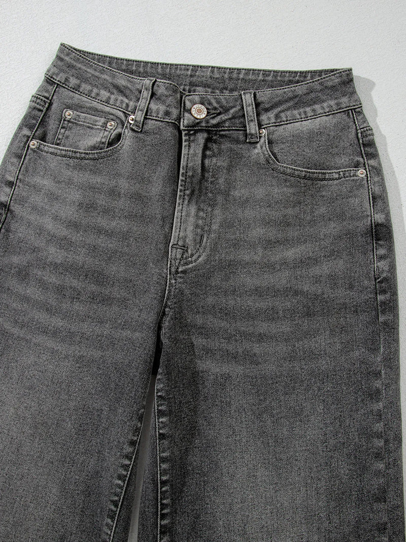 Introducing the Raw Hem Unique Cuffs Straight High Rise Loose Jeans! You know, the kind of jeans that say, 'I’m casual, but I also have a PhD in comfort.' Seriously, these jeans are so loose, they could host a family reunion!