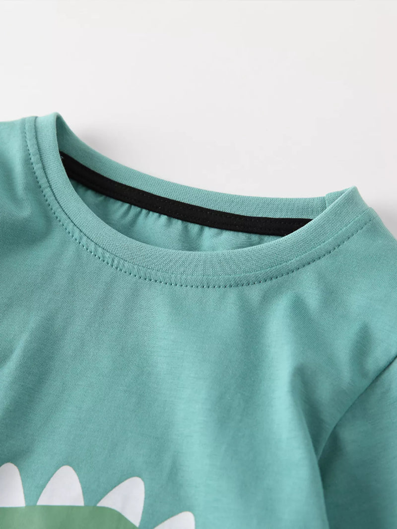 Children's Dinosaur Round Neck Top and Checkered Pants Set