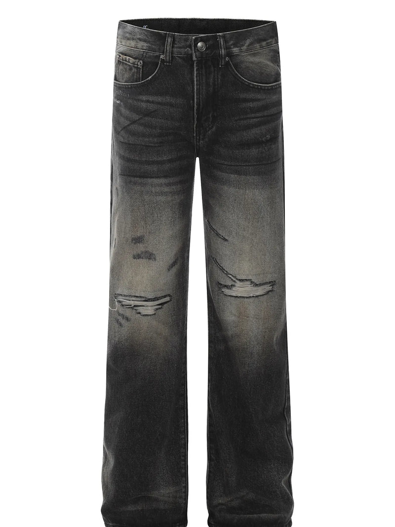 Introducing the Men's Distressed Wide Leg Jeans—because who needs a gym membership when you can just wear pants that make you look like you’ve been through a tough breakup? These jeans are pocketed, washed, and slightly stretchy, perfect for when you want to eat that extra slice of pizza without judgment.