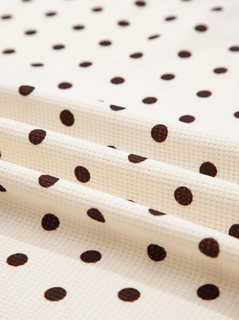Introducing the Polka Dot Notched Long Sleeve Top and Drawstring Joggers Lounge Set, a unique blend of comfort and style. This two-piece set features a playful polka dot design that adds a touch of whimsy to your loungewear collection.